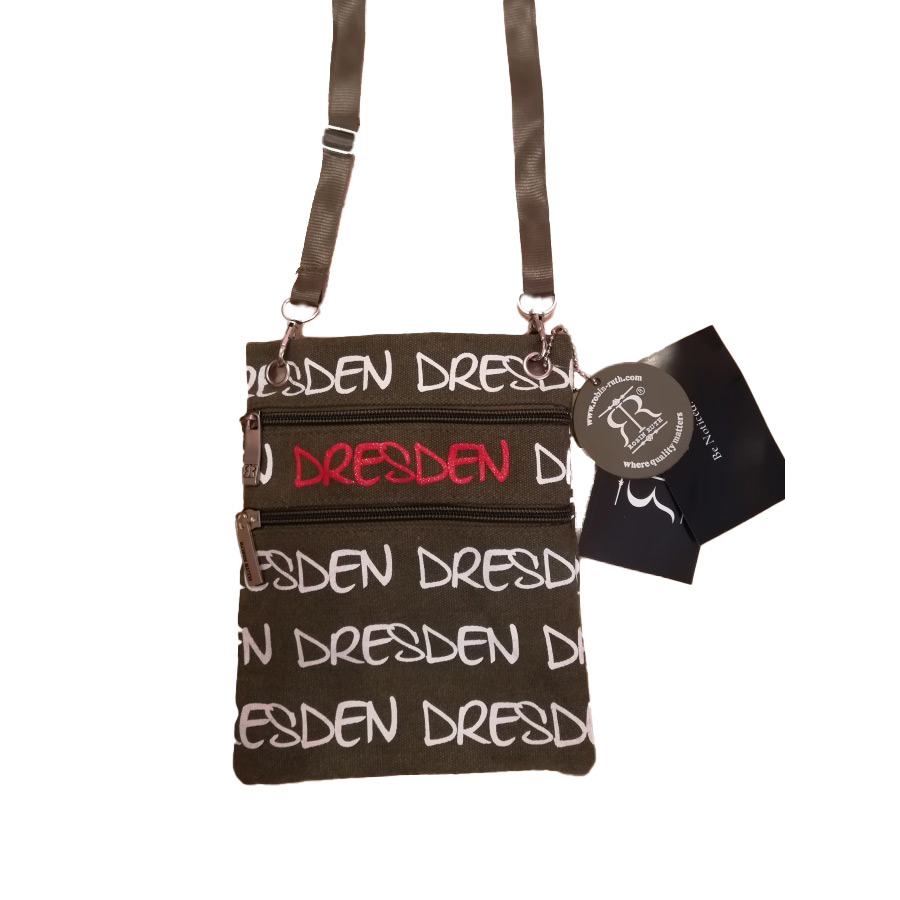 Kleine Umhängetasche der original Firma Robin Ruth, Abmaße 16cm x 20cm mit verstellbaren Henkeln und zwei kleinen Seitenfächern mit Reissverschlüssen.