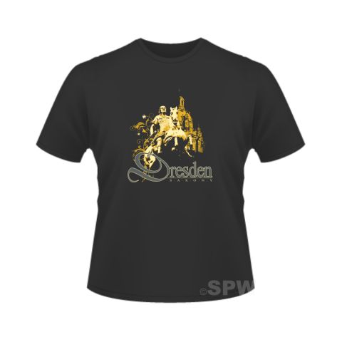 T-Shirt Frauenkirche, August der Starke gold auf schwarz